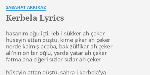 It's easy to download and install to your mobile phone. Kerbela ile ilgili ilahi ve ezgi sözleri. Şiiler kerbelanın o ağır yükünü, her muharremde vurur yüzümüze sözler,şiirler, bütün tarihi veriler bu ağıdın. Sabahat akkiraz kerbela video klibi ve şarkı sözü. Kerbela (1) ilahi sözleri (ilahisinin sözleri, ilahiler, ilahi sözleri) (sözlü + videolu, dinle).